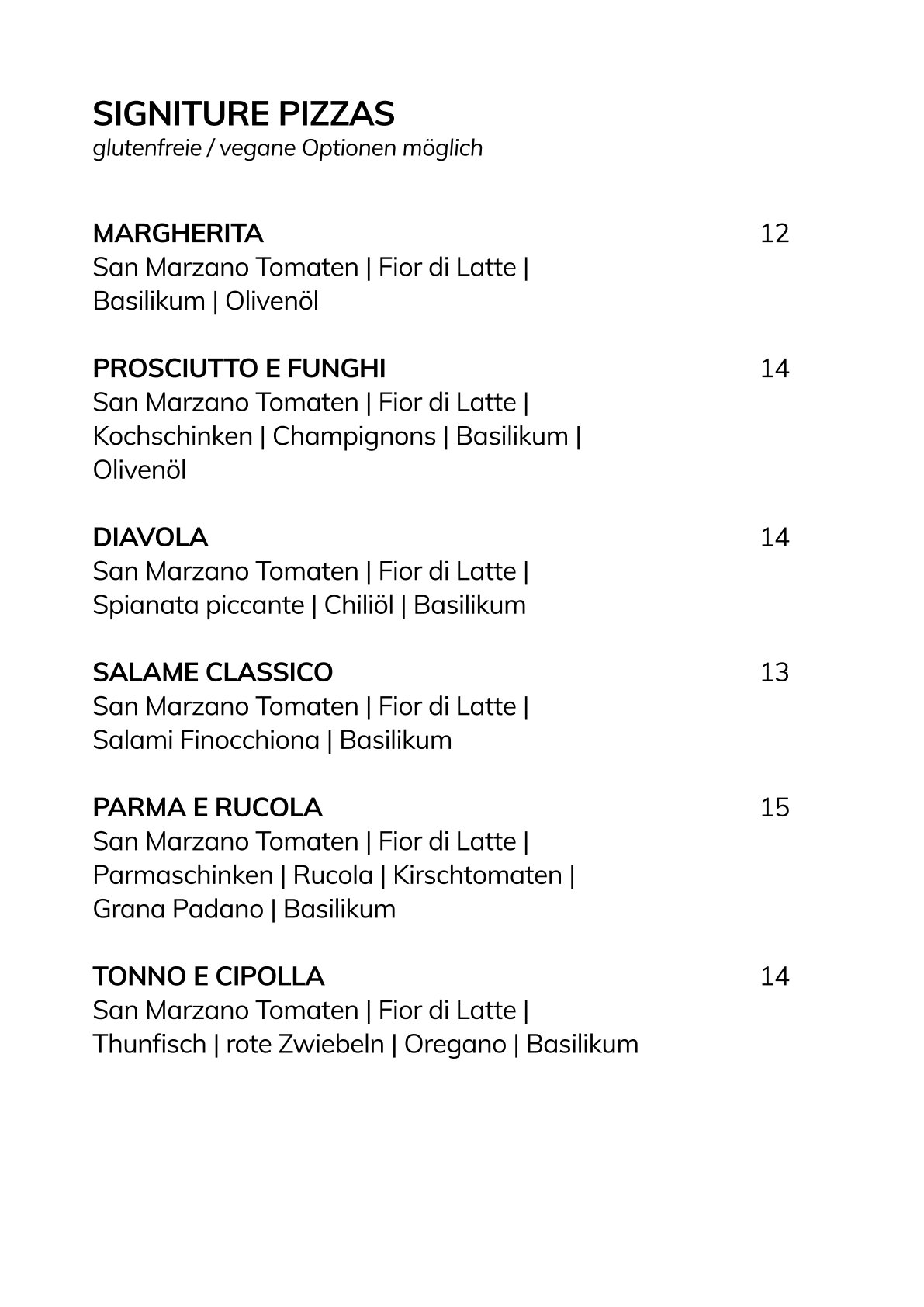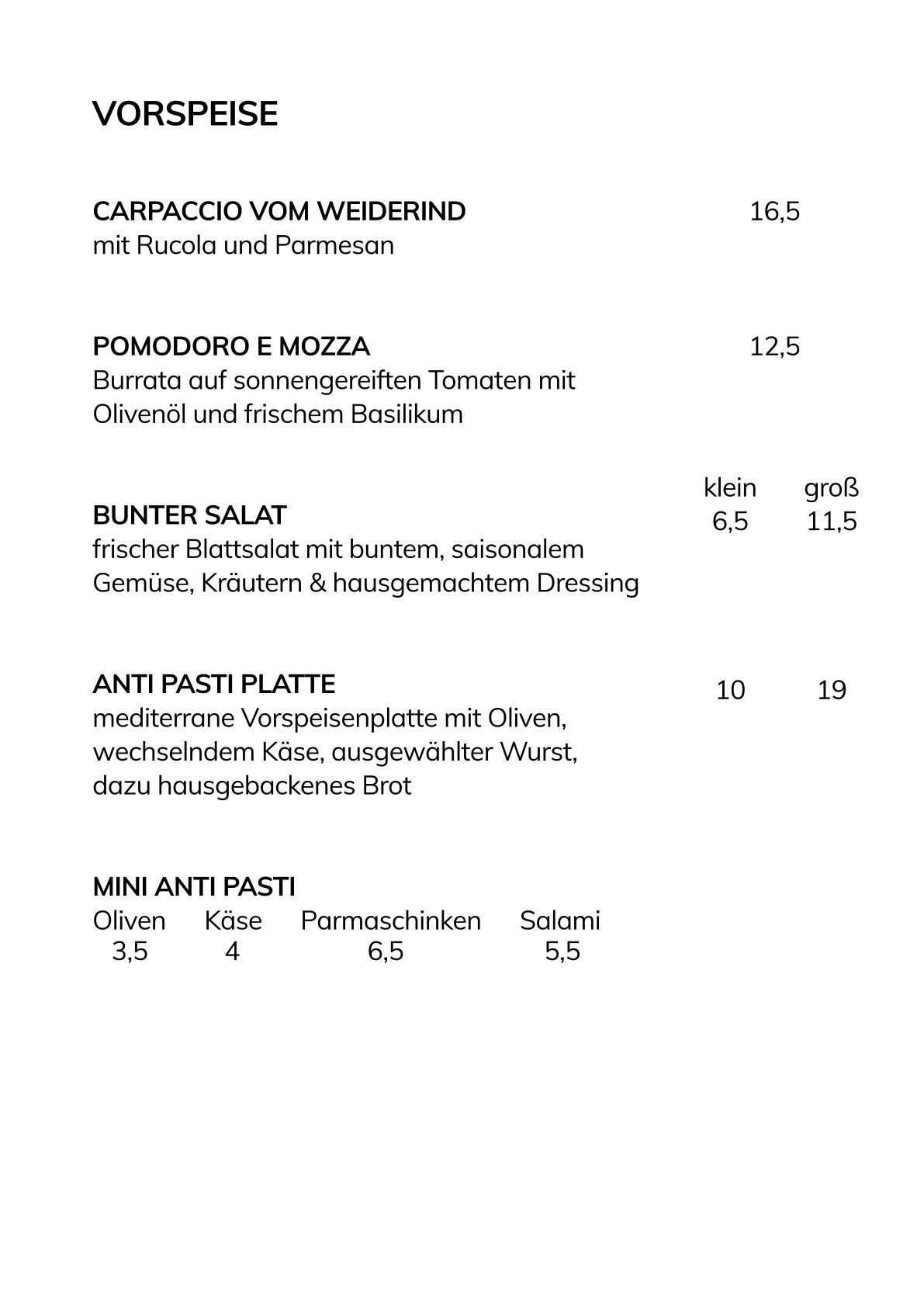 HollisTrattoria – Unsere Speisekarte