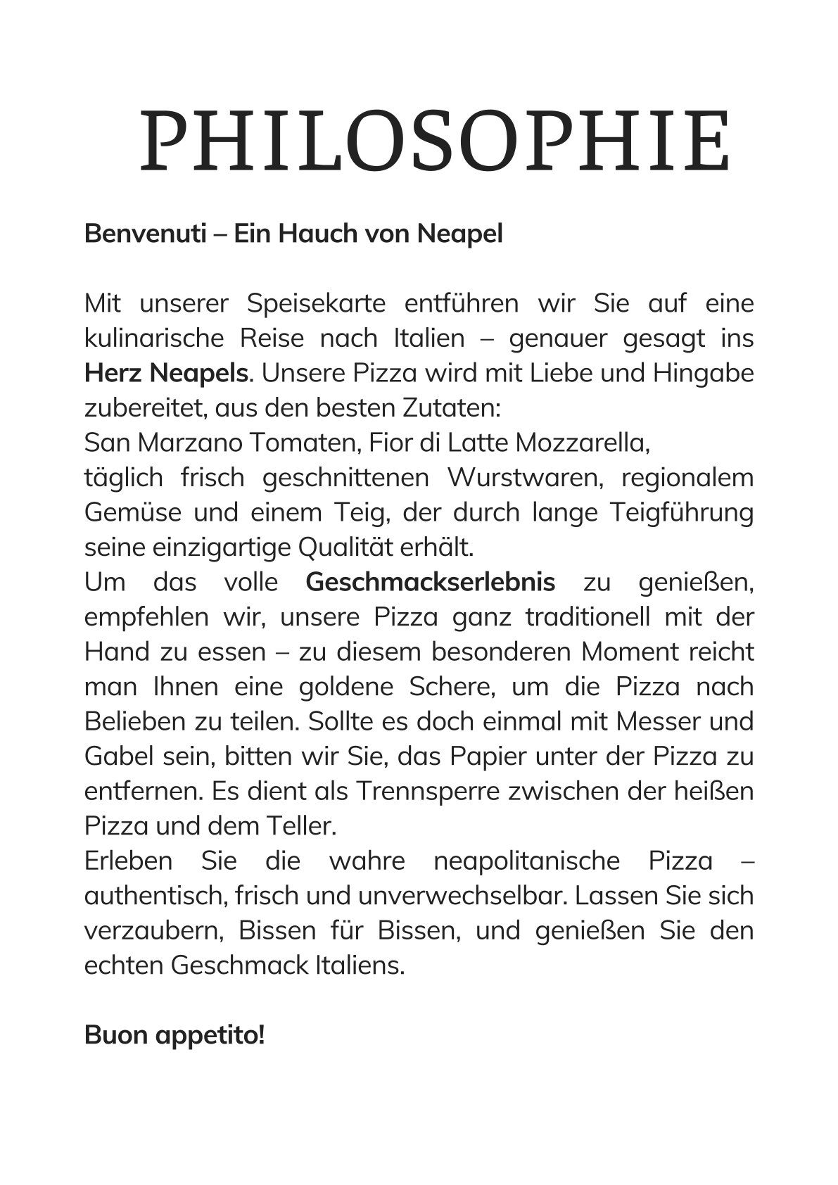 Neben unserer festen Karte bieten wir regelmäßig saisonale Specials – vom Trüffel-Abend bis zur Pasta della Settimana.